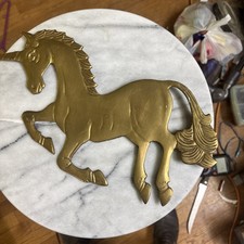 MCM Vintage 2 lb Solid Brass UNICORN Wall Hanging Decor 14”x10”