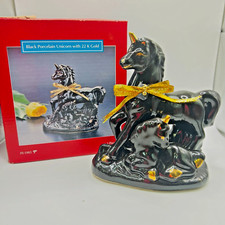 Vintage Mid Century Black Porcelain Unicorn 22K Gold Horn & Eyes 6" tall in Box