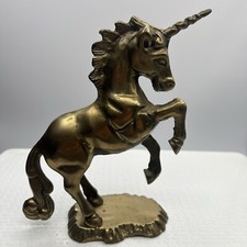 Vintage Mid Century Solid Brass Rearing Unicorn 7.5 Inches