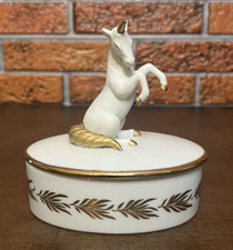 Vintage Unicorn Music Box Athenian Collection Porcelain Gold Floral Accents