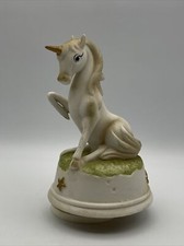 Vintage Porcelain Unicorn And Rainbow Rotating Music Box 1980's