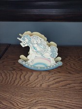 Vintage 1990s Hand Painted Wooden Unicorn Rocking Horse Music Box Articulated