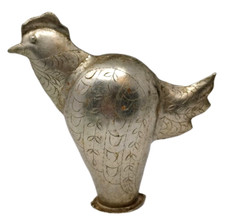 Chicken Rooster Figure Cast Silver Metal Vintage Farmhouse Lid Pot Folk Art WB