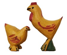 Antique Miniature Hand Painted Rooster,Hen Primitive Folk Art