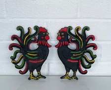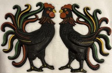 Antique Cast Iron Metal Rooster Plaques Chicken Wall Decor Set of 2