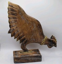 WOODEN ROOSTER HAND CARVED & PAINTED FOLK ART ANTIQUE 15 X 15 X 9