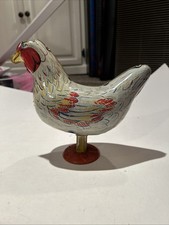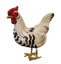 Antique Speckled Hen Chicken Rooster Hand-painted Sculpture Metal Farm Folk Art