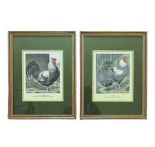 Pair of Antique Farmhouse Prints of Prize Rooster / Cock & Hen