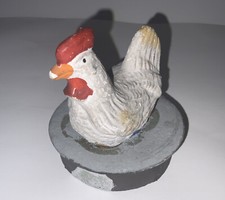 Vintage Antique CHICKEN Figures Rooster Hen Composite Metal Feet Hand Painted