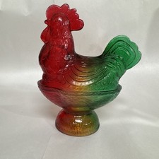 Antique Vintage Style Amber Crystal Glass Rooster Farm Art Decor Kitchen