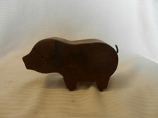 Hand Made Brown Metal Standing Pig Figurine, Antique Patina