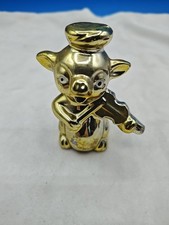 Antique PIG Figurine Gold Decorative Miniature Violin Playing Figure Vintage
