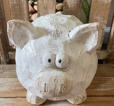 NEW White Farmhouse Contemporary Wooden Pig Decorative Piece Antique Vintage