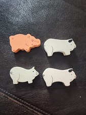 Lot Of 4 Vintage Painted Antique Wooden Pig Figurines Farm Animals