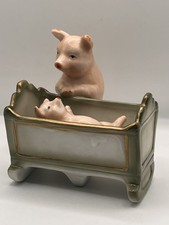 Antique German Fairing Pigs With Baby In Crib Hushabye Rhyme Inscribed