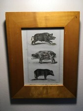 Framed Antique 1821 Copperplate Engraving, Pigs, Wild Boar, S.Davenport sc. !!!!