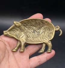 Antique Vintage Solid Brass Pig Shaped Pin Ring Trinket Dish 4" x 2.5"