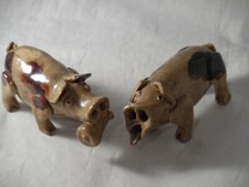 RARE? ANTIQUE STUDIO? STONEWARE COMICAL OLD SPOT PIG FIGURES POTTERS MARKS 11cm