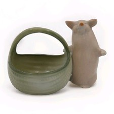 ANTIQUE MADE IN GERMANY PIG WITH A BASKET FIGURINE FARING. RARE