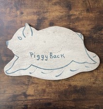 Vintage Handmade Hand Painted Pig Sign: “Piggy Back” White And Blue, Toy Ride