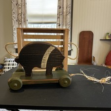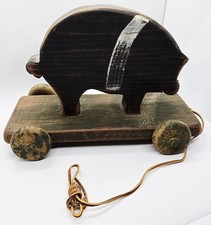 Vintage Wolf Creek Wooden Rolling Pig Animal Toy Primitive Folk Art Decor