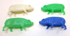 4 Vintage 1960's 4" Long Hollow Plastic Farm Set Toy Pig Models Green Blue White