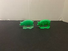 Vintage Green Plastic Farm Pig Toy Figure Lot of 2