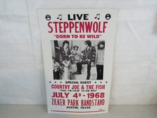 Steppenwolf Advertising Vtg Concert Poster 22" X 14" Austin Tx. July 4th, 1968