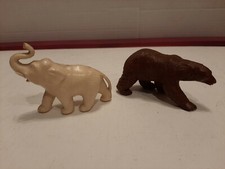 2-Vintage Japan Celluloid Wild Animals Elephant & Brown Bear 3.5" Shelf K3