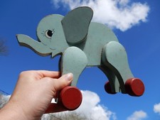 VINTAGE Wood Elephant Pull Toy Jake's Woodcraft Beloit Wi