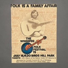 Vintage Rare 1975 WINNIPEG FOLK MUSIC FESTIVAL CONCERT POSTER Canada 16 X 20.5