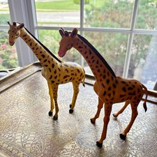 Two African Giraffe 5" Tall Vintage 1980's Hard Plastic Toy Models
