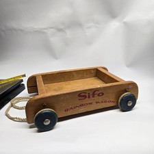 Sifo Rainbow Wagon Wooden Pull Toy with Rope Handle Vintage Used