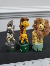 Antique Vintage Lion, Giraffe, Zebra 3pc Circus Push Toy Figurines