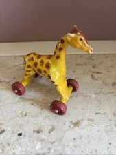 Vintage Wood Rustic Giraffe Toy hand carved Toy Animal On Wheels Folk Art