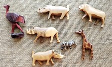 Lot Of 7 Vintage Wood Carved Toy Animals Zebra, Giraffe, Lion, Bird, Rhinoceros