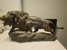 Antique Lion Bronze,Sculpture,Decor Nature Wildlife Art,Mid Century Modern