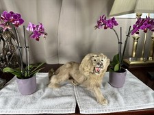 Vintage flocked lion 8” midcentury real fur mane sitting open mouth roar