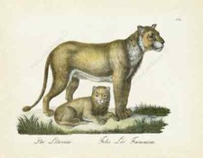 LIONESS AND CUB antique Georgian engraving Brodtmann 1816 wall art print poster