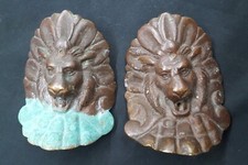 Antique Vintage Lion Head Bookends 7" ? brass states lacquered 22-3088 India F17