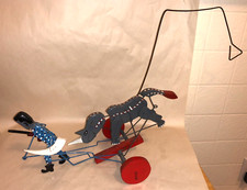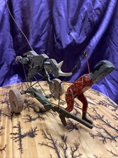 Vintage Hand Carved Painted "The Rhino & Poacher" Push Toy Sculpture Zimbabwe