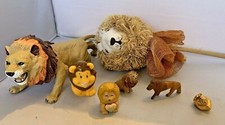 Vintage Lion Figurine Collection Plastic Wood Berrie Toy Estate Find Lot of 7