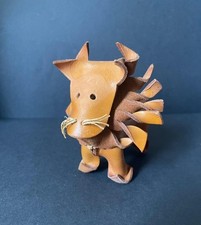 Vintage MCM Folded Leather Origami LION Handcrafted Toy Sculpture 11cms H Deru