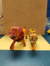 Vintage CE 1987 8" Hard Plastic Lion Animal Figure Figurine Toy And Tiger