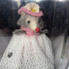 Vintage Original Fur Animals mouse mice Dressed In Party Dress W. Germany 2"