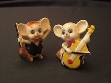 Antique porcelain pair little mice mouse musician conductor cello