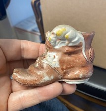 antique porcelain shoe with two mice sleeping