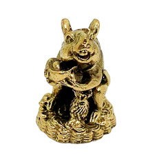 Tiny Brass Mouse with Gold Ingot Feng Shui Rat Statue Chinese Zodiac Lucky Gift