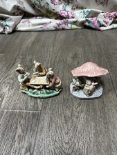 Vintage/Antique 3 Mice Playing Cards & Bunny Family Ceramic Figurine