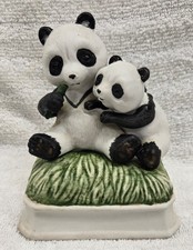Vintage Gorham Ceramic Panda Bear & Baby Music Box Plays Love Me Tender Japan